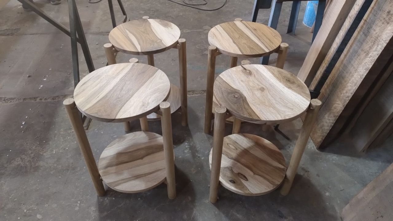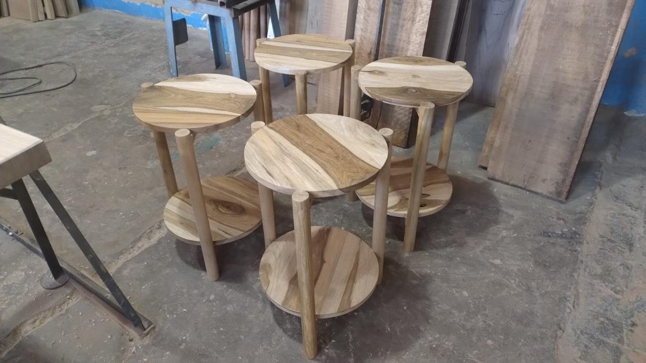 • Tapa y estante de madera maciza de 2″ con  3 patas de madera torneada