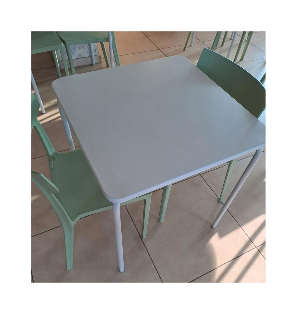 • Mesa metalica  y sillas plasticas a pedido.